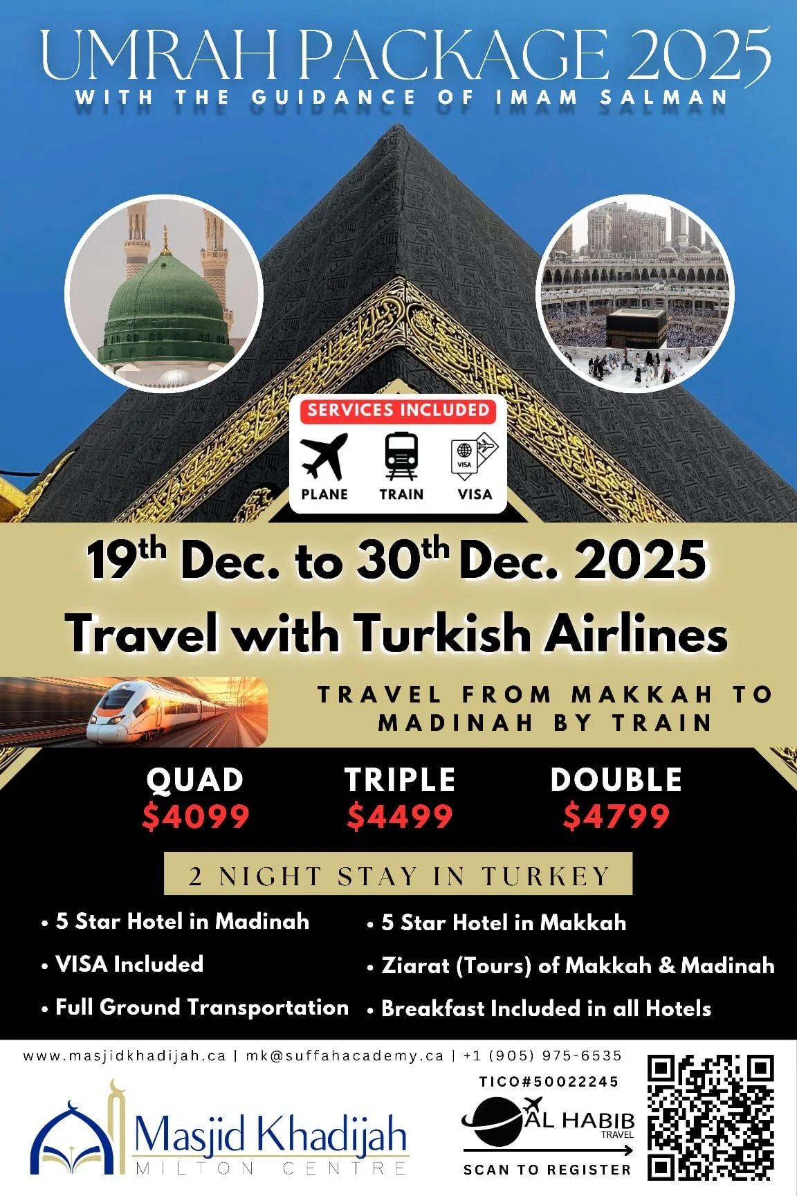 Alhamdulillah, Masjid Khadijah Milton Centre is organizing a spiritually uplifting Umrah trip this December! π